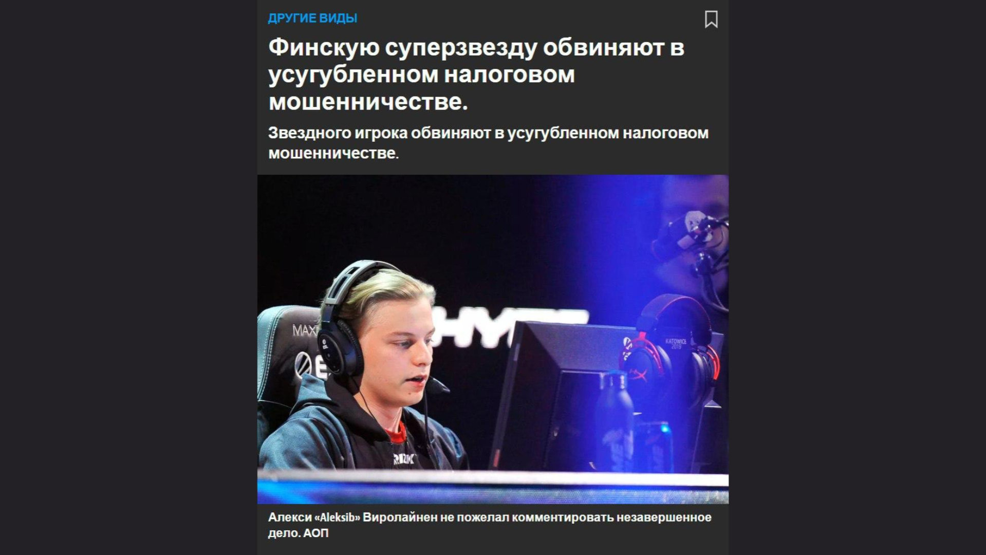 Финский капитан Алекси AleksiB Виролайнен получил от местных органов дело о неуплате налогов – это может привести к исключению игрока из активного ростера Natus Vincere.