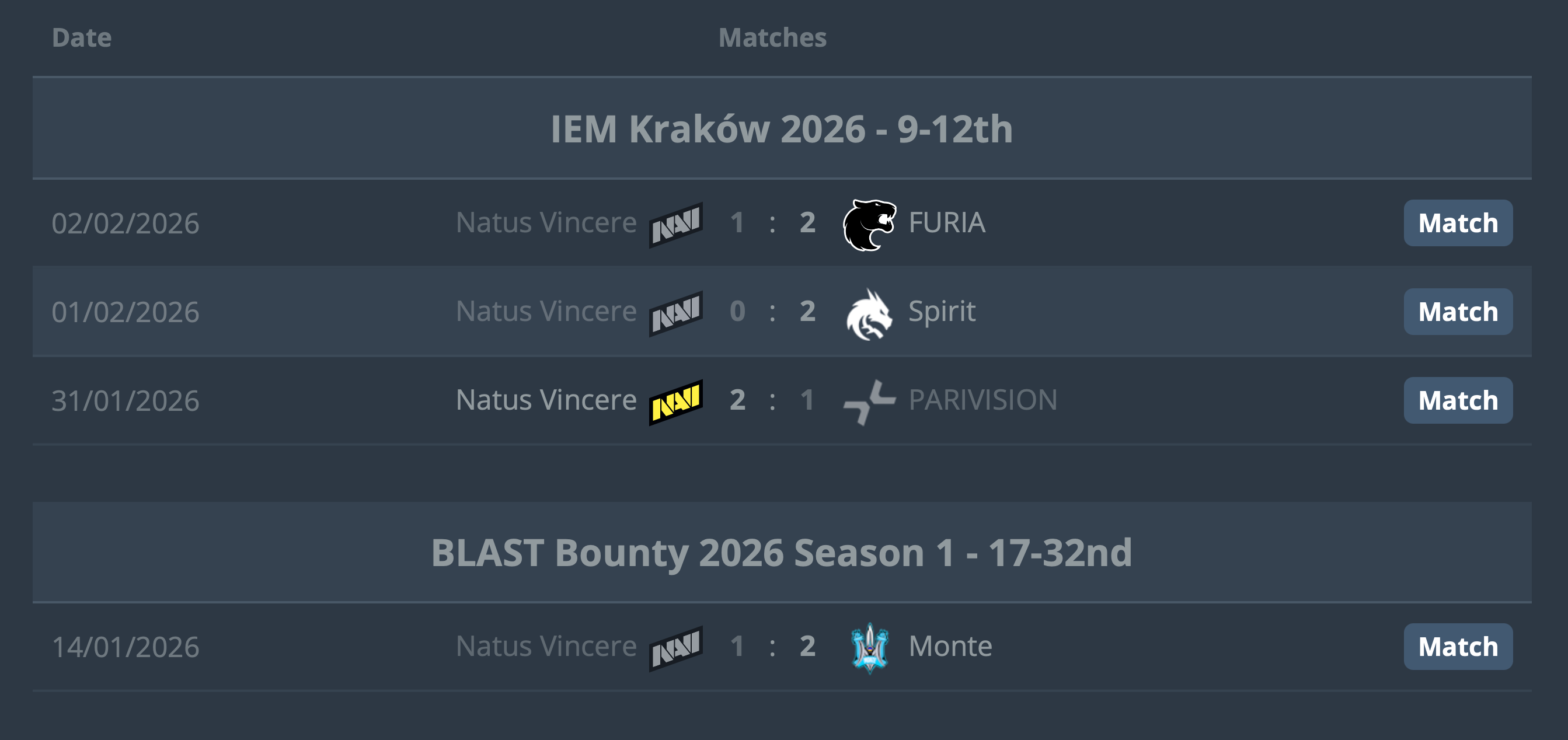 Natus Vincere закончили выступление на IEM Krakow 2026, заняв 9-12 место. В этом году команда выиграла лишь 1 матч против PARIVISION, а стартовала и вовсе с неожиданного поражения от Monte на BLAST Bounty 2026.