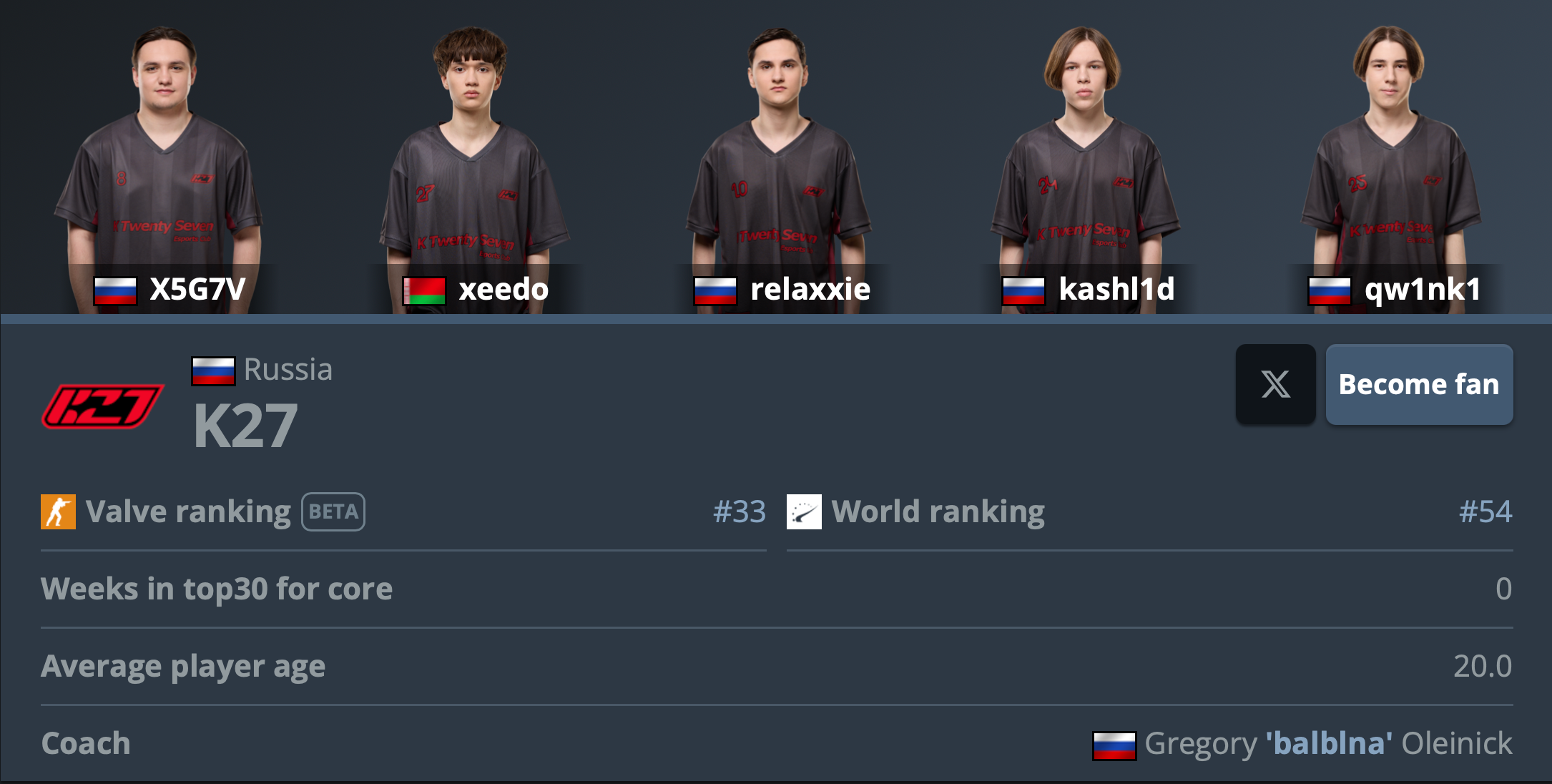 Сейчас команда занимает 54-ое место в рейтинге HLTV. Ростер также почти входит в топ-30 VRS-рейтинга, однако уже не имеет шансов на участие в IEM Krakow Major 2026.