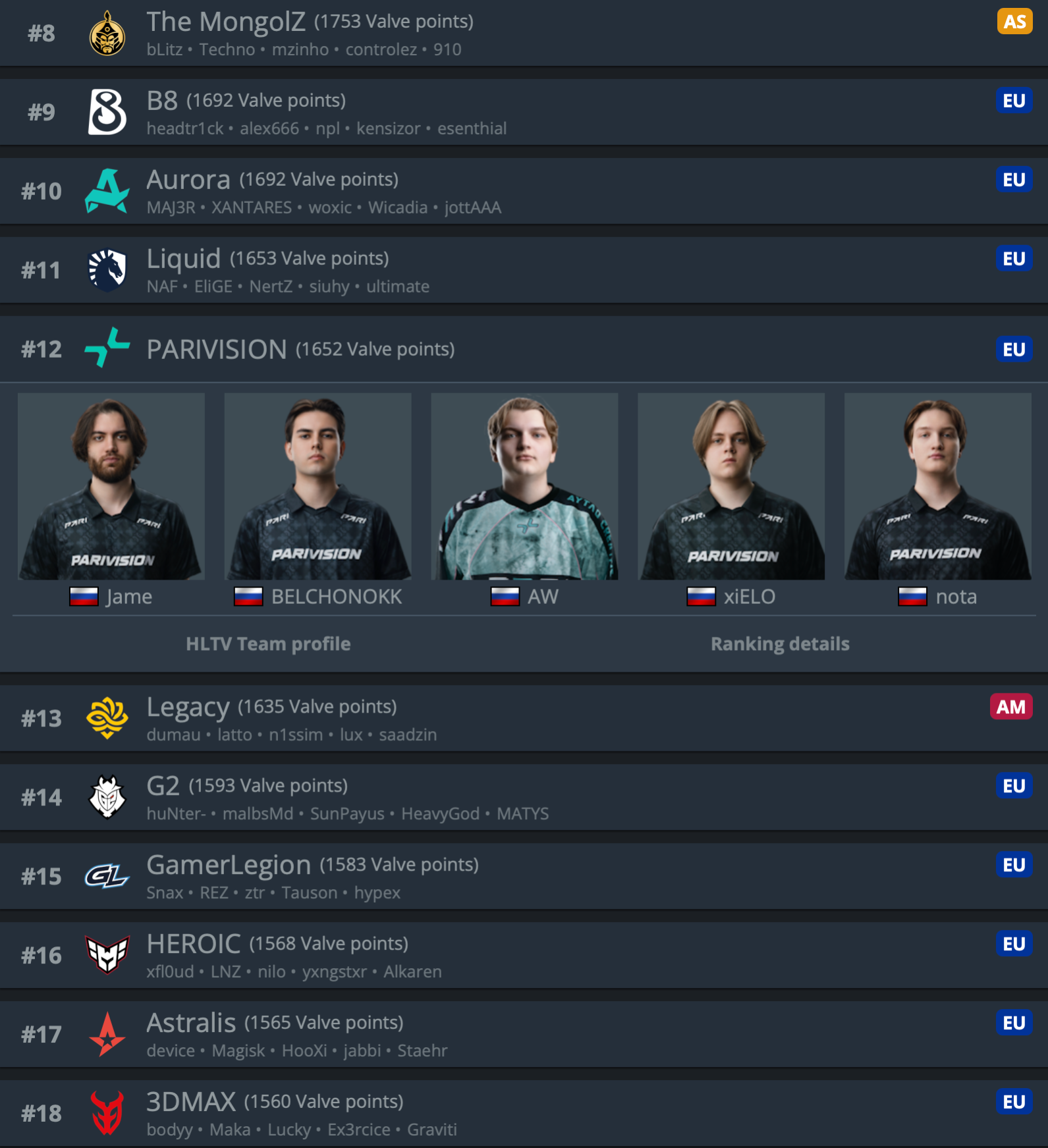 Благодаря неожиданной победе, PARIVISION поднялись сразу на 12-ое место в рейтинге от VALVE и вне зависимости от финального результата на турнире будут получать больше инвайтов на тир-1 турниры в 2026 году.