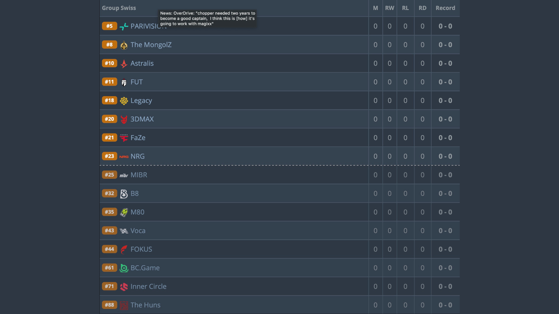 Для прямого инвайта на Stage 1 необходимо входить в топ-20 региона Европы — сейчас это недостижимо без серии побед на LAN.